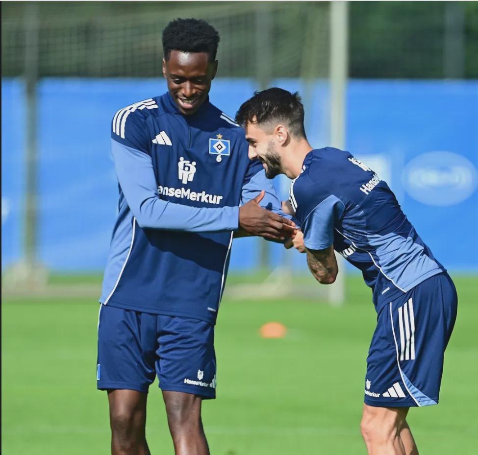 洛孔加和维埃拉在汉堡参加训练。...